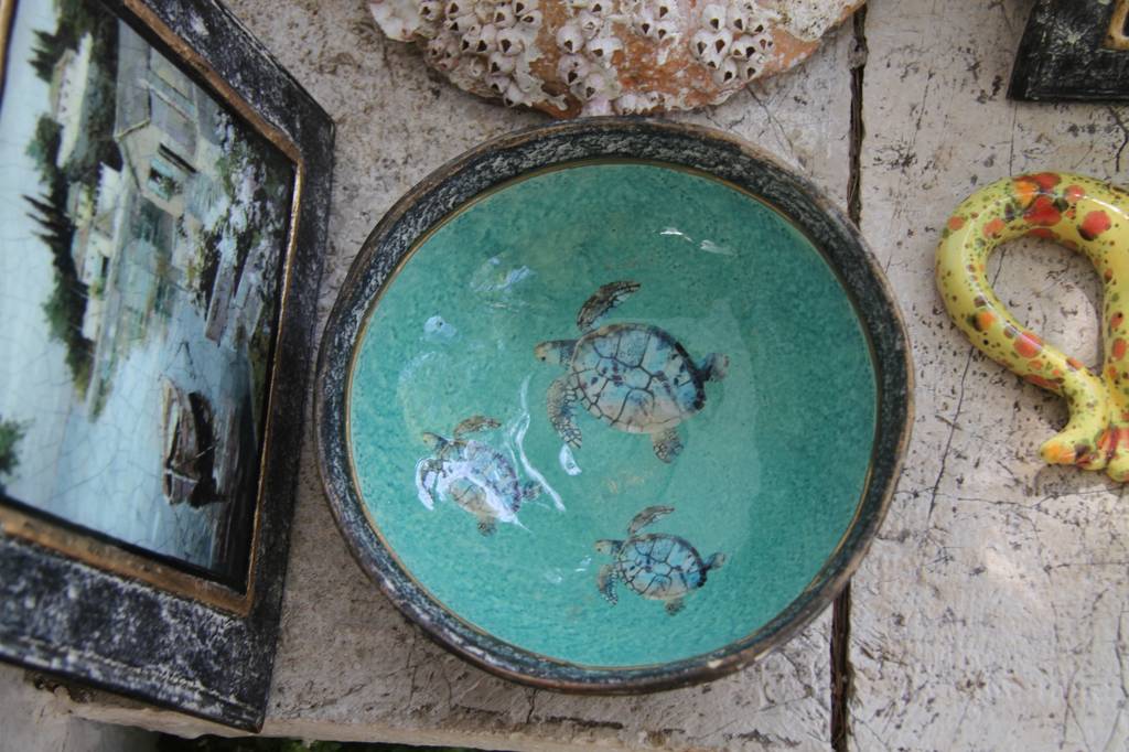 Oben ist ein kleiner Laden mit schöner Handwerkskunst