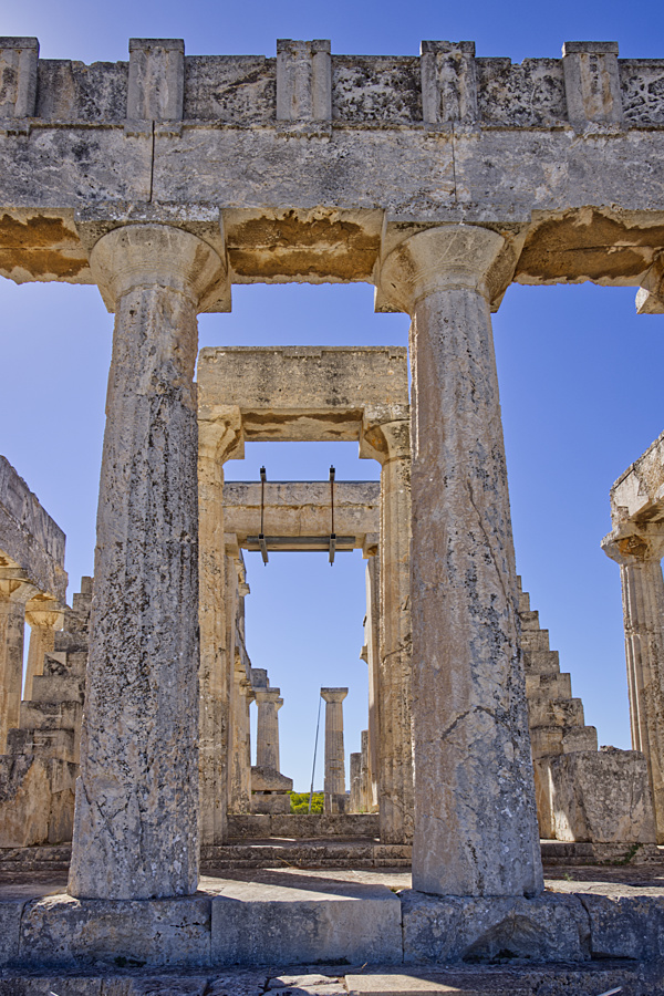 ZitatWenn man mit der Fähre von Piräus nach Ägina fährt, ist der Tempel schon von Weitem zu erkennen. Regelmäßig fahren die Busse von Ägina-Stadt in Richtung Agia Marina zu diesem Heiligtum. Mittlerweile steht der 3. Tempel an dieser Stelle. Er stammt aus dem Jahre um 500 v. Chr. und ist der Göttin Aphaia geweiht, die nur hier auf Ägina verehrt wurde. Aphaia galt als eine Tochter des Zeus und war der Artemis ähnlich.
