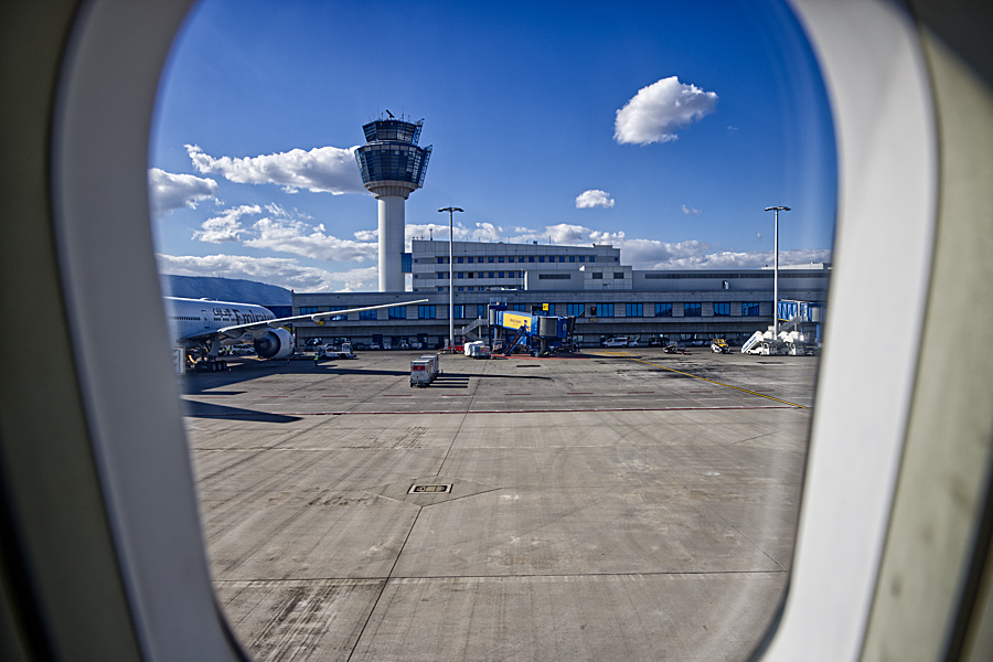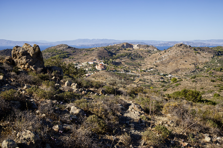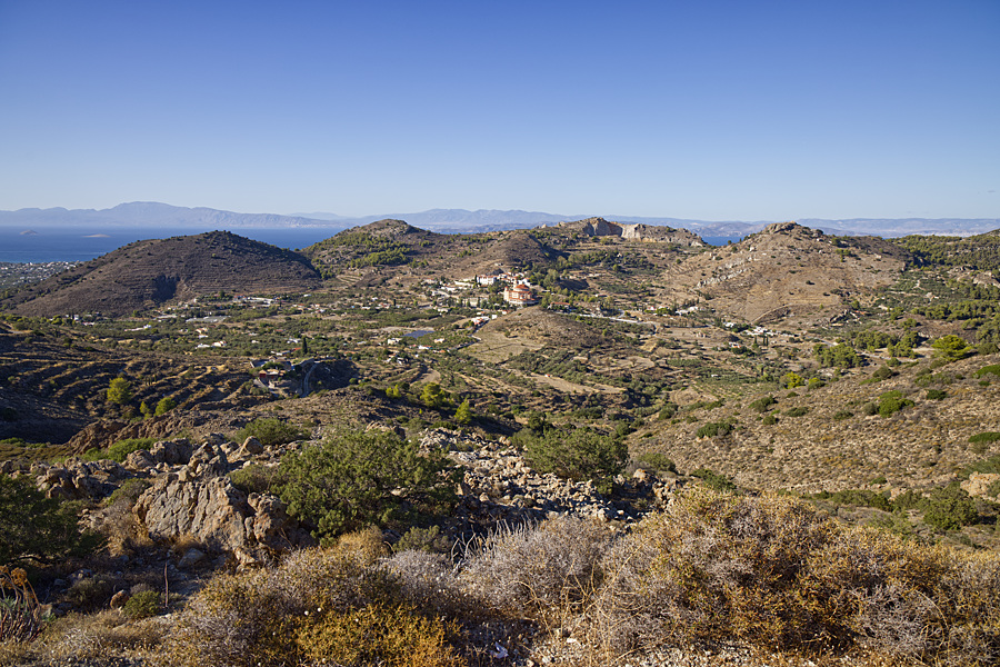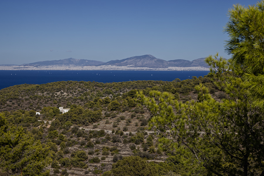 Die Sicht ist heute gut, wir können bis nach Piräus schauen und auf der anderen Seite sehen wir Agia Marina,