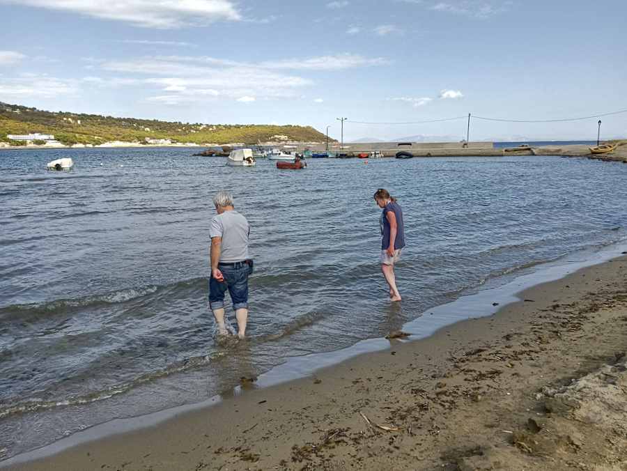 Wir lassen uns Zeit und fahren erst am frühen Nachmittag los. Dieses Mal machen wir einen richtigen Stop am Aphaia -Tempel. Der Bus ist gerade weggefahren und ein nächster Bus noch nicht in Sicht. ![]()