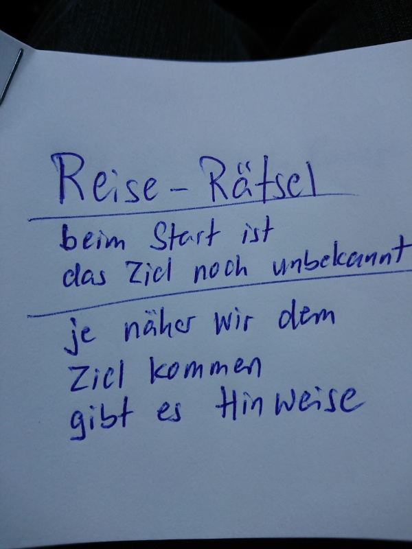 Friedrich hat ein kleines Reiserätsel vorbereitet, ihr dürft gerne mit Rätseln. Allerdings solltet ihr Google benutzen, habt ihr es sehr schnell raus. Dann behalte die Lösung bitte für euch.