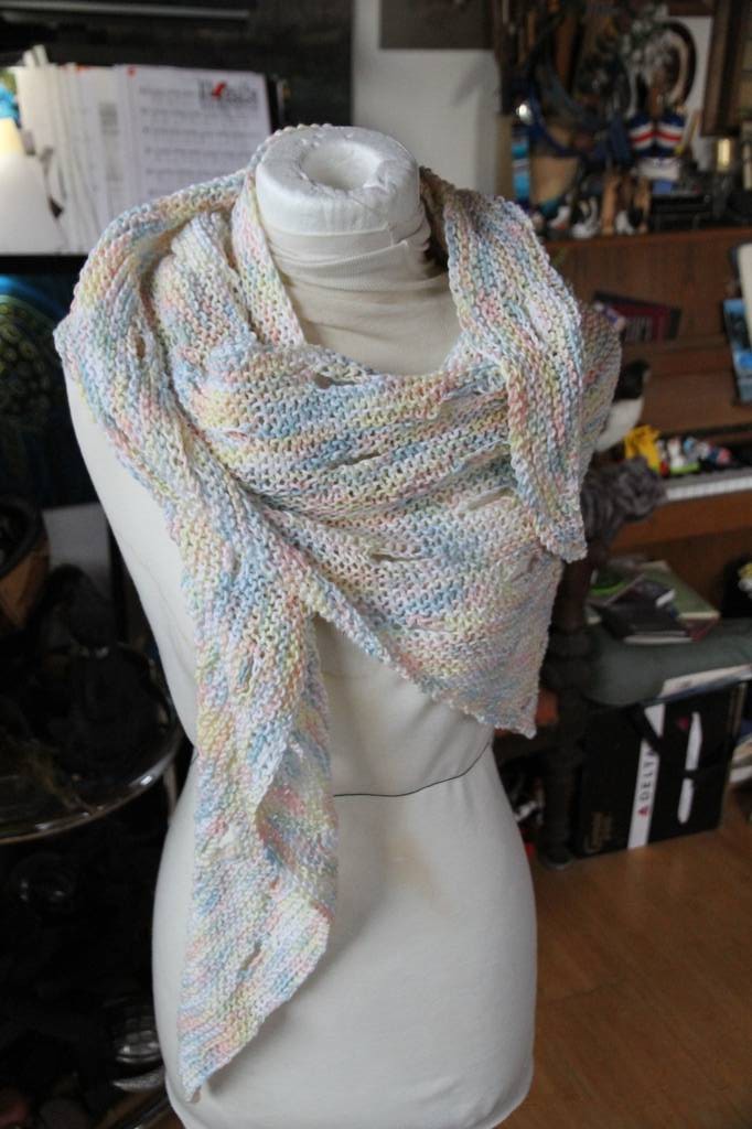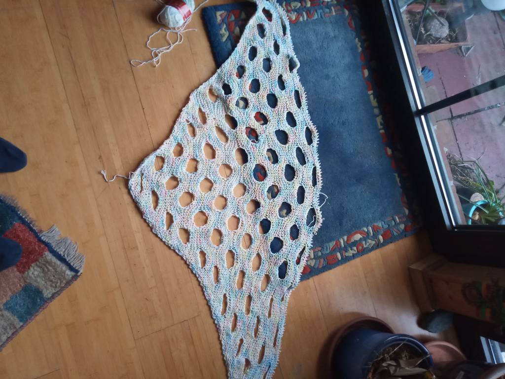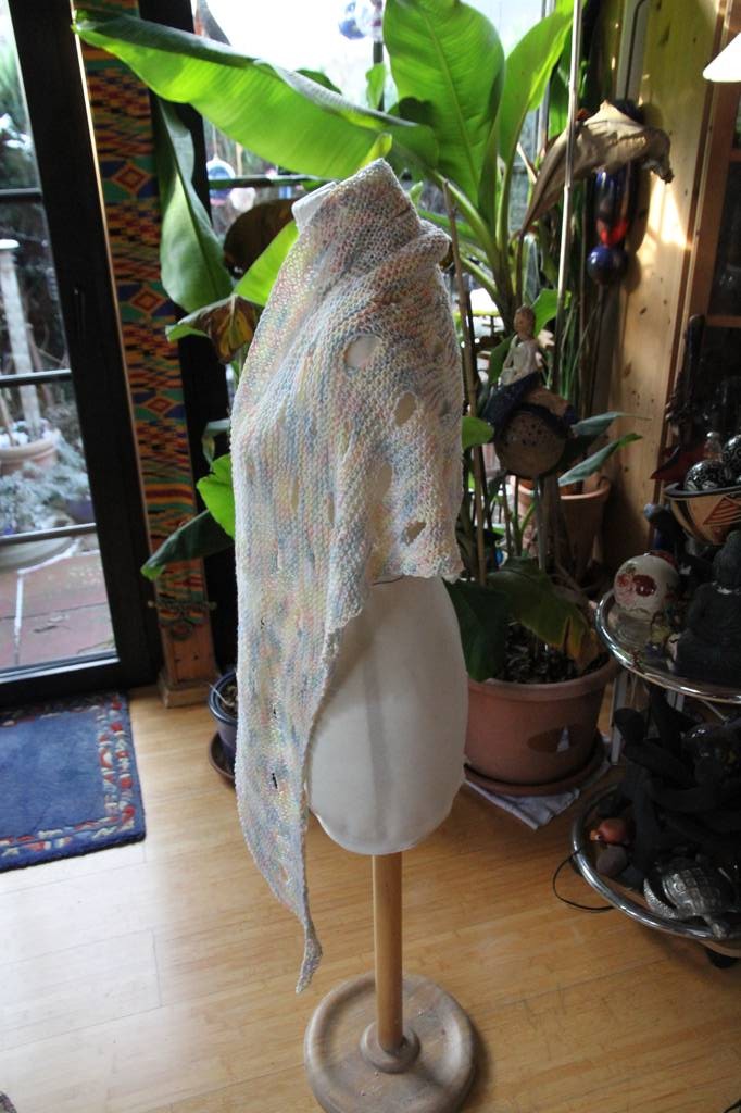 • Vor Weihnachten habe ich verschiedene Sachen fertig bekommen. Dazu gehört auch dieses Tuch aus einer Baumwolle, die mir freundlicherweise Claudi mal geschickt hat. Es hat ein Lochmuster,