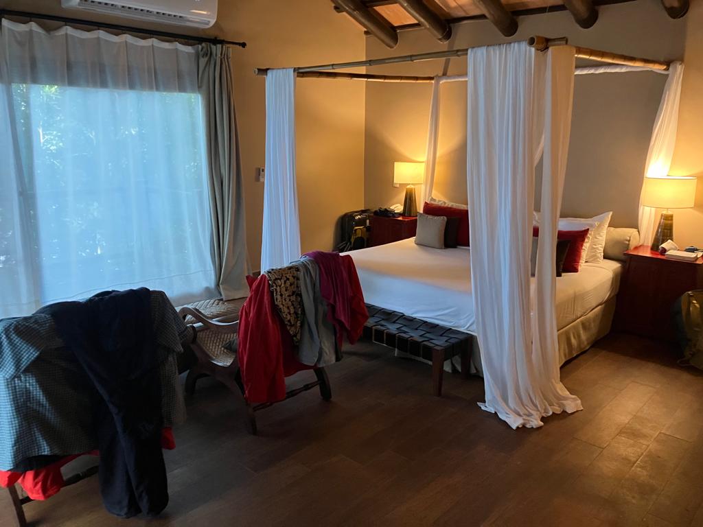 Unser Häuschen lag ganz hinten in der Anlage und wir mussten unser Gepäck über 3 Hängebrücken schleppen.