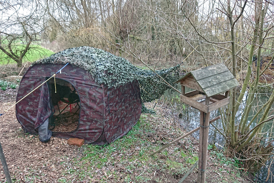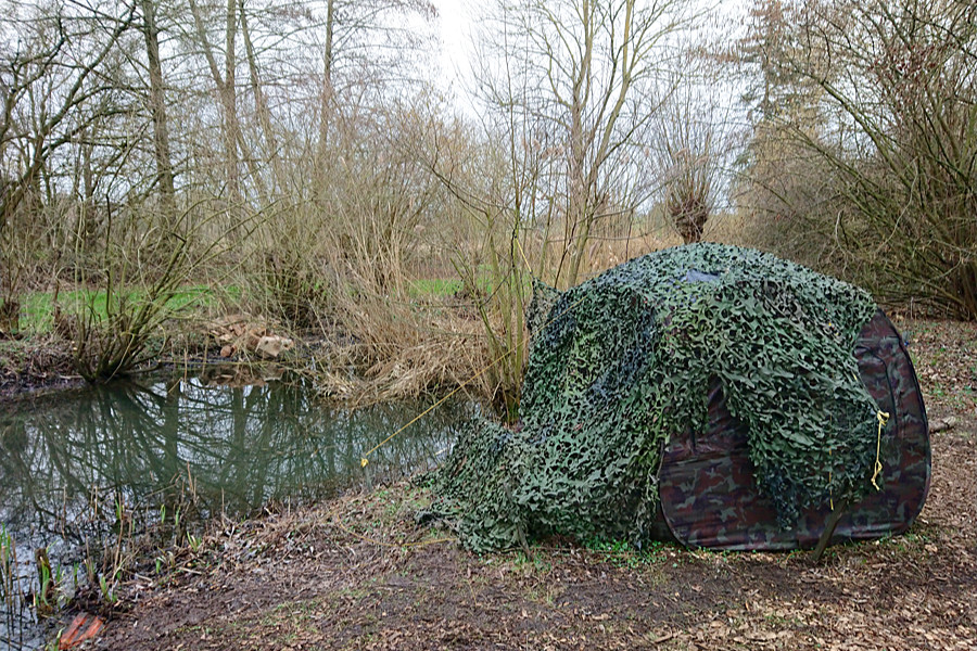 Der Zufall wollte es, dass Kathrin mir und Karin einen Link mit einem Foto-Workshop Schleiereulen und Uhu schickte. Allerdings können wir dort nicht hin, da es kurz vor unserer Antarktis-Reise ist. Als ich mir die Webseite näher anschaute, sah ich die Möglichkeit, einen Eisvogel aus einem Zelt heraus zu fotografieren. Am 4.3.23 war dann die letzte Möglichkeit einen Termin zu ergattern und kurzentschlossen buchte ich. ![]()