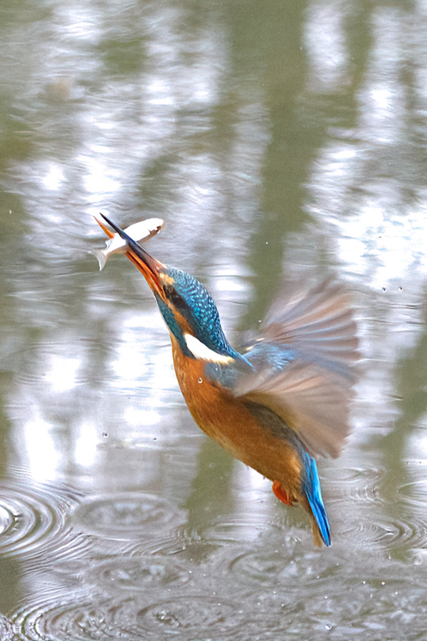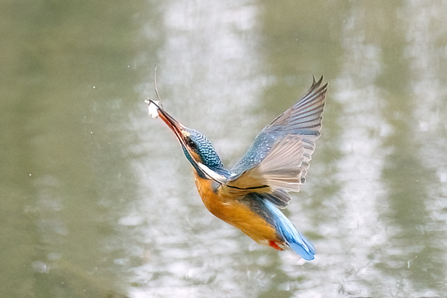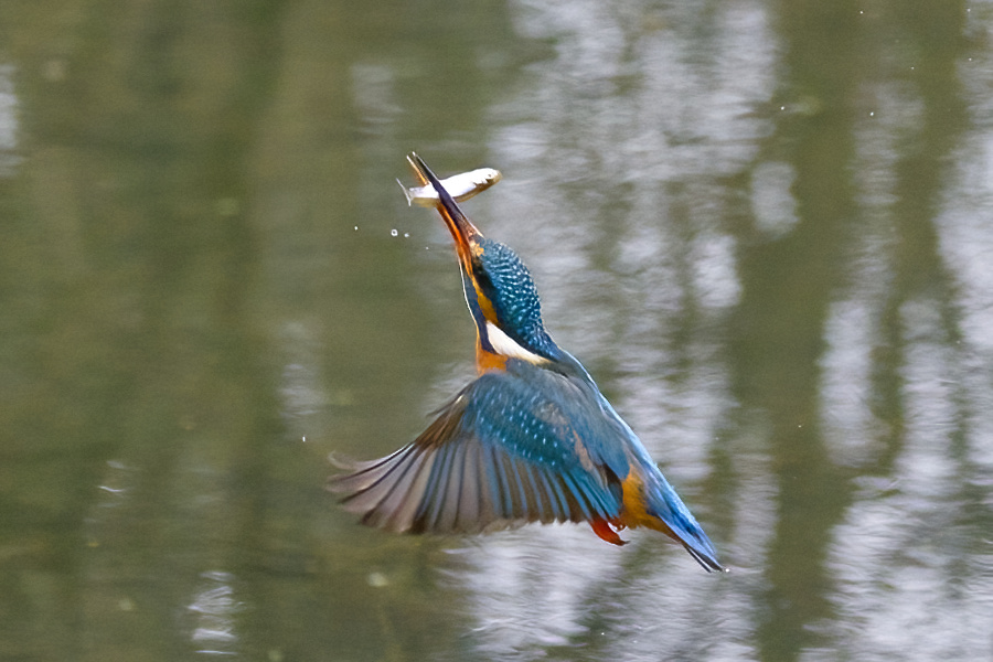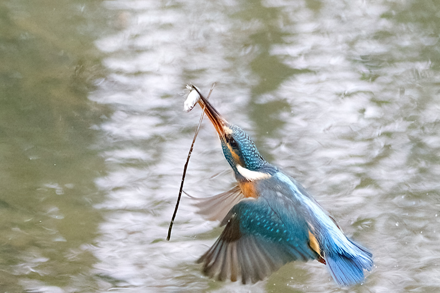 Der Eisvogel ernährt sich hauptsächlich von kleinen Fischen, machmal auch von Insekten, kleinen Fröschen und Kaulquappen. Dazu sitzt er an einem Fluss oder Süßwasserteich auf einem Ast und wenn er einen Fisch entdeckt, dann stößt er blitzartig ins Wasser, um mit der Beute wieder zurück auf den Ansitzast zu fliegen. Der Fisch wird geschüttelt und /oder auf den Ast geschlagen und dann mit dem Kopf zuerst im Ganzen verschluckt.