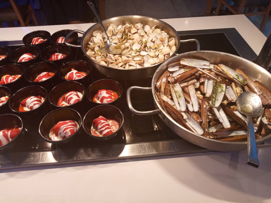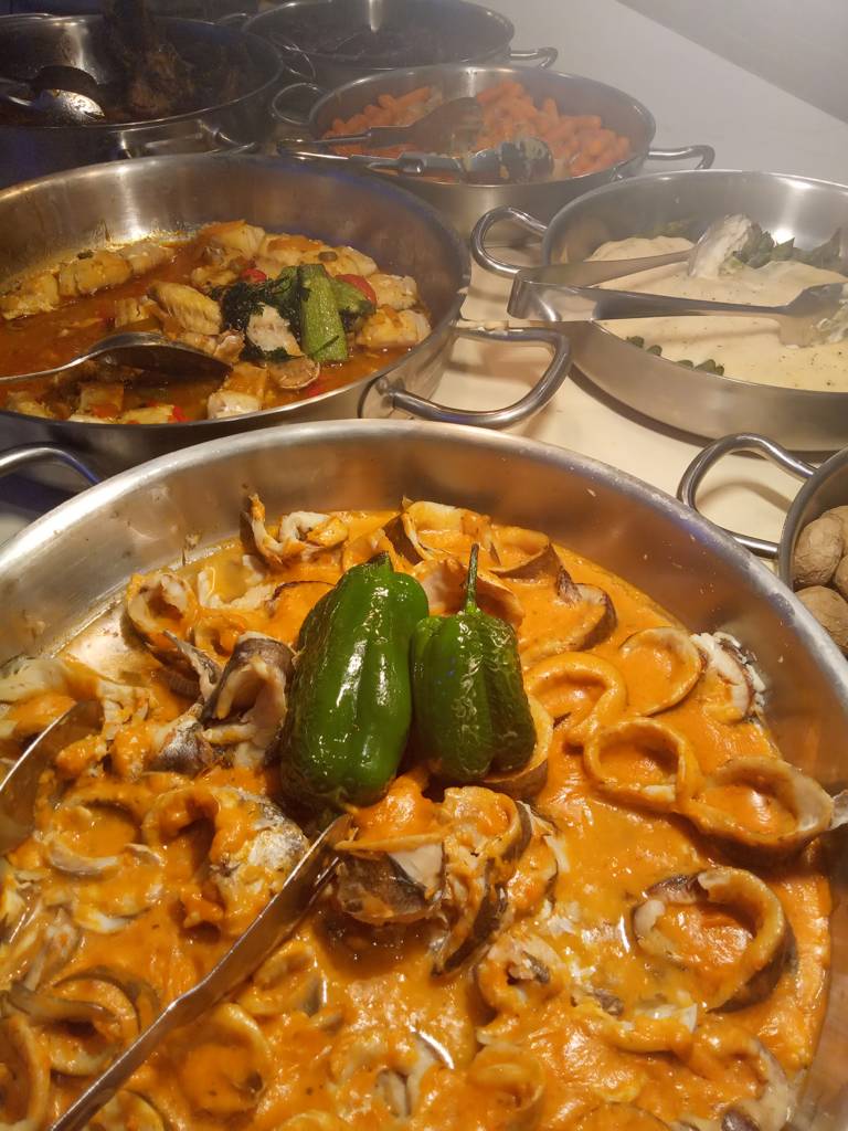 Heute abend, wir sind wieder überpünktlich beim Essen, gab es jede Menge Meeresgetier zu Essen, das ist genau unser Ding.
