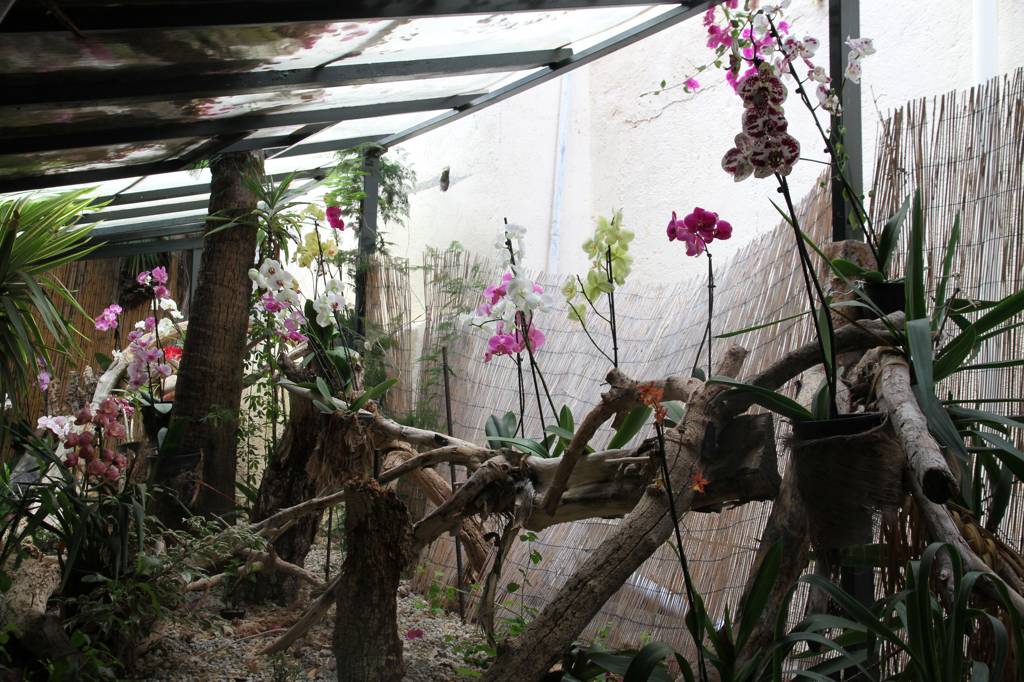 Der Orchideenteil hingegen ist eher enttäuschend -hier stehen die Orchideen iin diesem Gang rechts und links n Plastiktöpfen, als seien sie gerade beim ALdi gekauft