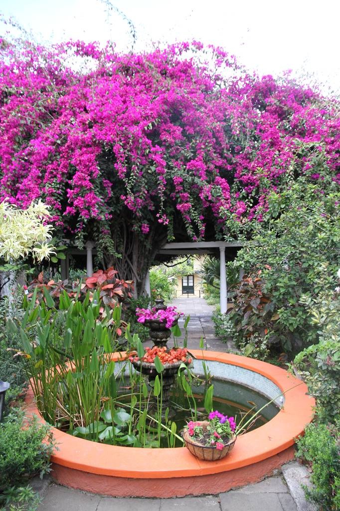 Im Garten ist es ein wenig dschungelmäßig und es überwiegen Bäume. Es gibt wohl 120 Baumarten. An blühenden Plfanzen sind es wohl eher Schattengewächse