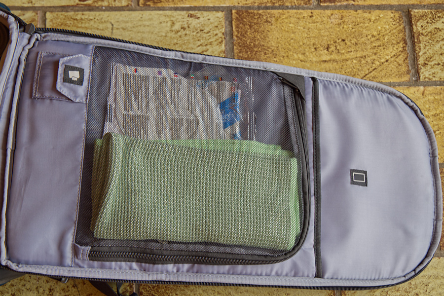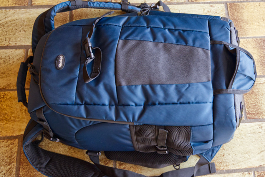 Für meine Ausrüstung ist er genau richtig. Die Größe von 56 x 33 x 25 cm passt, denn der Tragegriff ist in der Höhe mitberechnet. Somit ist er Handgepäcktauglich. Er wiegt 1,84 kg, fasst 27 l, das ist auch ok. Es gibt eine variable Inneneinrichtung, ein Laptopfach und viele andere Möglichkeiten, etwas zu verstauen. Ein Regenschutz ist auch vorhanden.