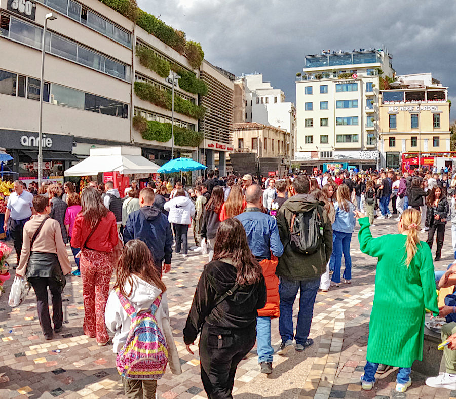 Angekommen in Athen wurden wir mit einem heftigen Gewitter begrüßt. Mit der Metro M3 (Hellenic Train) fuhren wir bis zum Syntagma Platz und stiegen dort in die M2 bis zum Omonia Platz. Die Fahrkarten kosten 9 € pro Person, für Senioren ab 65 gibt es eine Ermäßigung. Von dort hatten wir dann noch rund 800 Meter bis zu unserem Hotel.