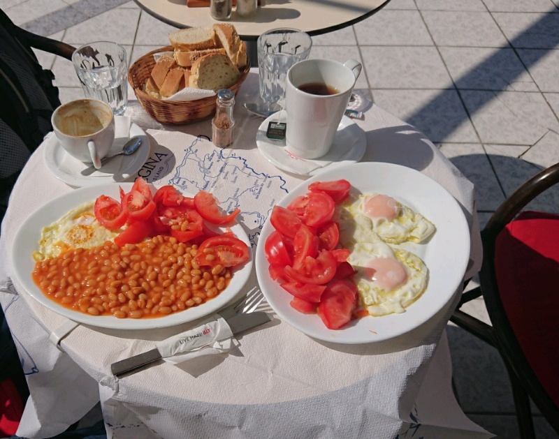 Wou, ich glaube so einen Berg Bohnen zum Frühstück würde ich nicht runterbekommen, aber das die Tomaten lecker sind glaube ich sofort. Bei dem heutigen Grau tut es richtig gut mit Euch zu wandern