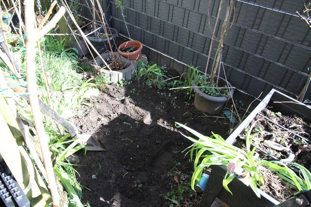 Das ist die BAustelle im Steinhochbeet