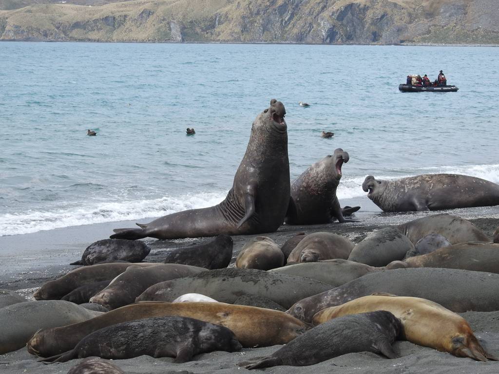 Nach ca. 60 Stunden rauer Fahrt (der Speisesaal war deutlich weniger gefüllt) freuen wir uns auf Grytviken.