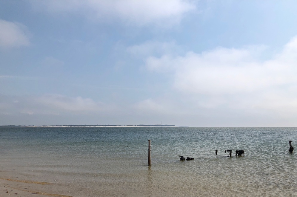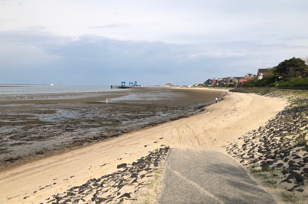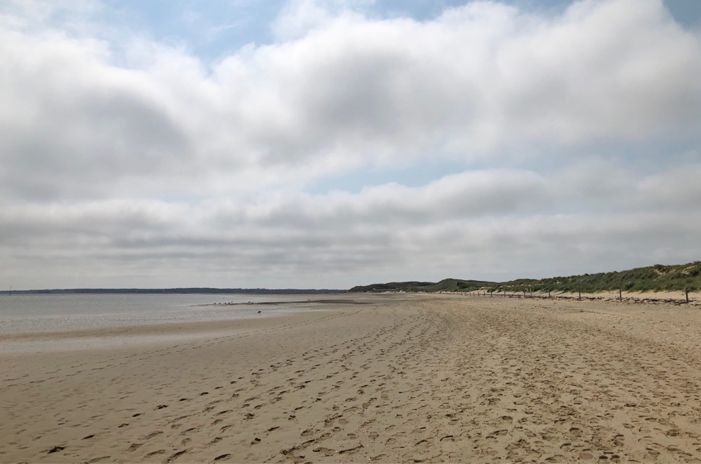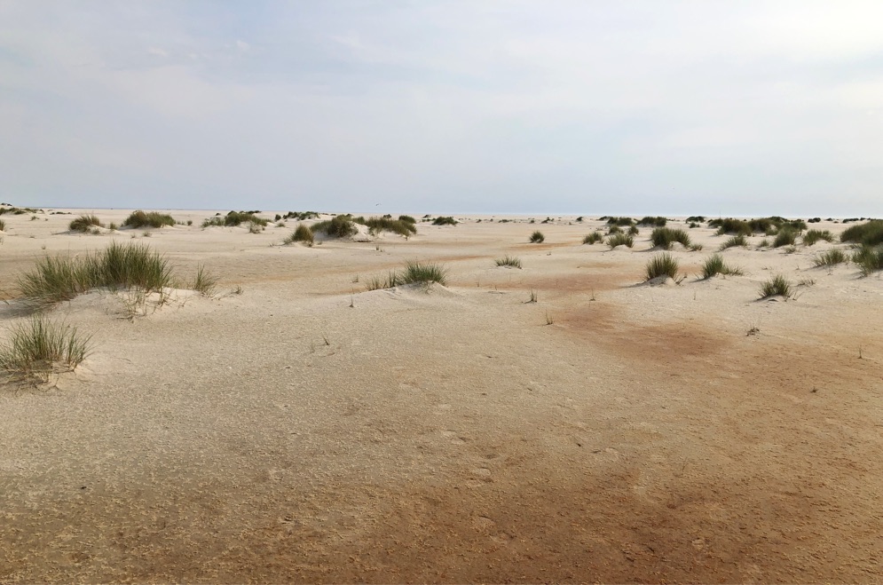 Man muß schon richtig weit laufen, bis man das Wasser sieht. Zum Glück ist der Sand meist fest, wenn man bei jedem Schritt knöcheltief einsackt, wäre es eine Tortur.