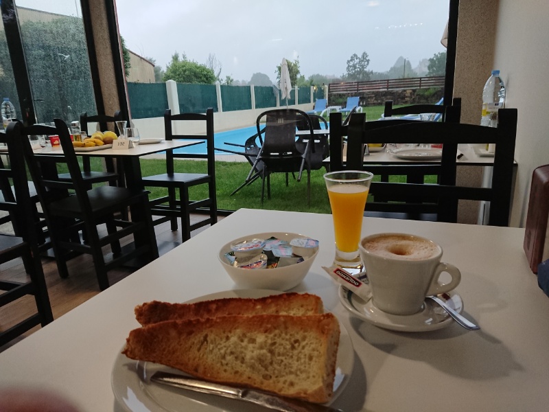 So, heute bin ich 20,8 km bis O Pedrouzo gelaufen, es war wunderschön, die Sonne schien, aber es war nicht zu heiß, die Steigungen waren auch nicht zu steil und jetzt habe ich eine schöne Unterkunft. Die Wäsche ist gewaschen und gerade im Trockner. Um 19 Uhr gehe ich ins Restaurant zum Essen.