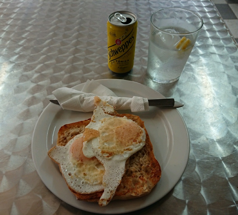 Heute nehme ich mal das Menü mit Vino tinto. Man hat mir die ganze Flasche hingestellt.