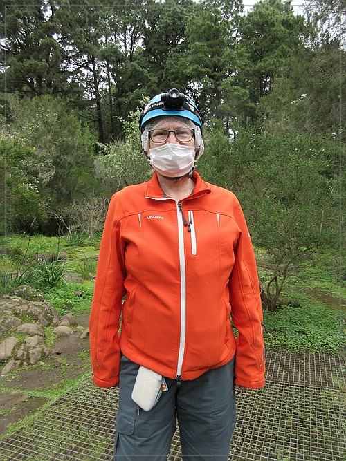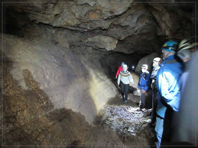 Drago bat uns auf dem Rückweg kurz die Lampen auszumachen, damit wir die völlige Dunkelheit erleben können. Ein etwas korpulentes Mitglied eines deutschen Kegelvereins schnaufte auf dem Rückweg schon ziemlich schwer. Als das Licht ausging, bekam er Panik. Wir dachten zuerst an einen Herzinfarkt und das wäre fatal gewesen. Auf dem unebenen, teils scharfkantigen Boden kann man niemand hinlegen. Wir stellten die Lampen wieder an und redeten beruhigend auf ihn ein. Er hatte nur hyperventiliert. Ganz langsam gingen wir alle zum Eingang zurück. Draußen legten wir die Helme und Masken ab und gingen gemächlich auf einem anderen Weg zurück zu den Bussen.