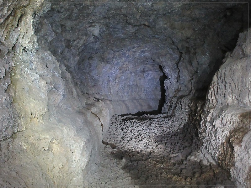 Der Ausbruch des Pico Viejo, das ist der kleinere Vulkan neben dem Teide, formte diese Röhre. Hier schoss damals die flüssige Lava durch. In der Hauptröhre kann man aufrecht stehen.