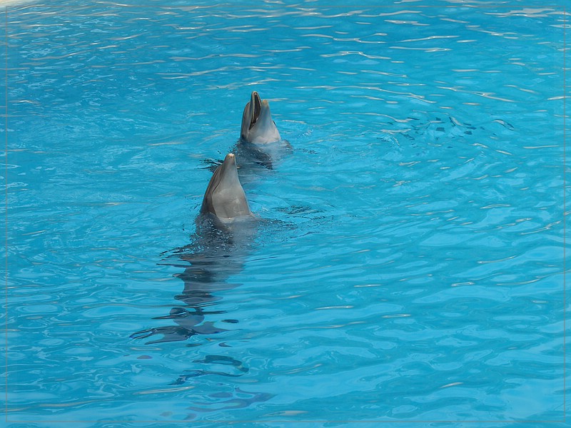 Bevor die Delphinshow um 11.15 Uhr begann, durften die Aras über dem Pool fliegen.