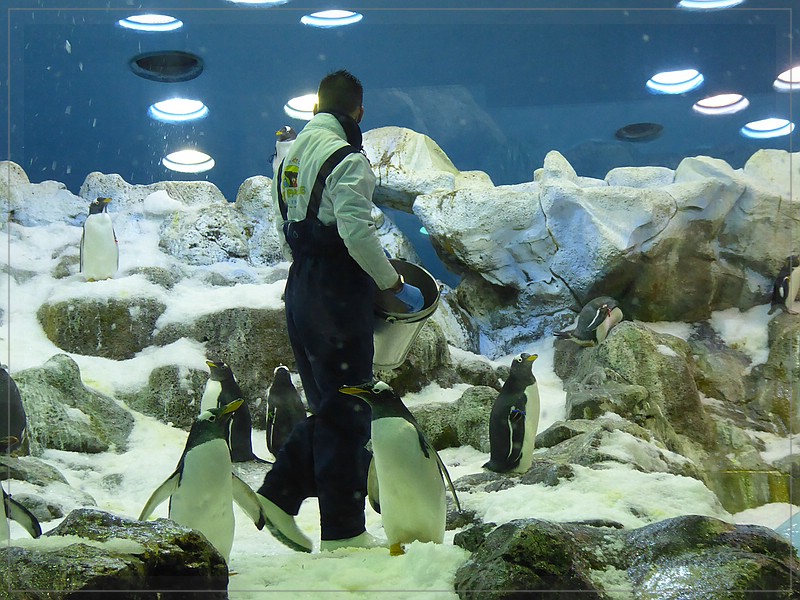 • Doch nun kommen wir zum nächsten Bereich, dem Planet Penguin. Von dem war ich damals schon begeistert. Hier wurde der antarktische Lebensraum nachgebildet, in dem die für die vier Pinguinarten (Humboldt-, König-, Felsen- und Haubenpinguine) nötigen Licht- und Temperaturverhältnisse gegeben sind.