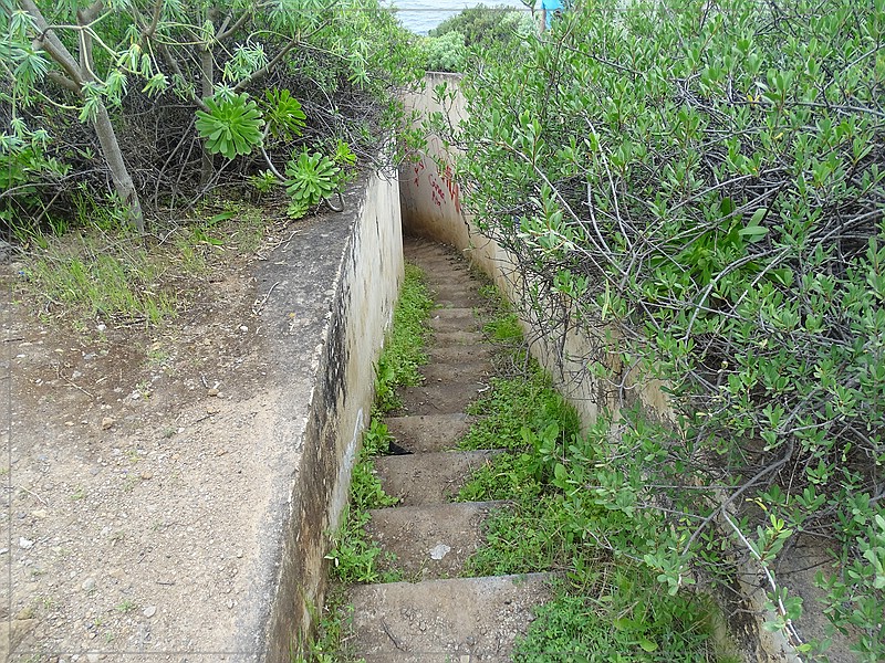 Der Betonklotz wurde als Verteidigungsanlage im 2. Weltkrieg errichtet. Die Position des Bunkers an der Klippe ist dabei hervorragend gewählt. Es konnte ein großer Teil der Nordküste überblickt werden.