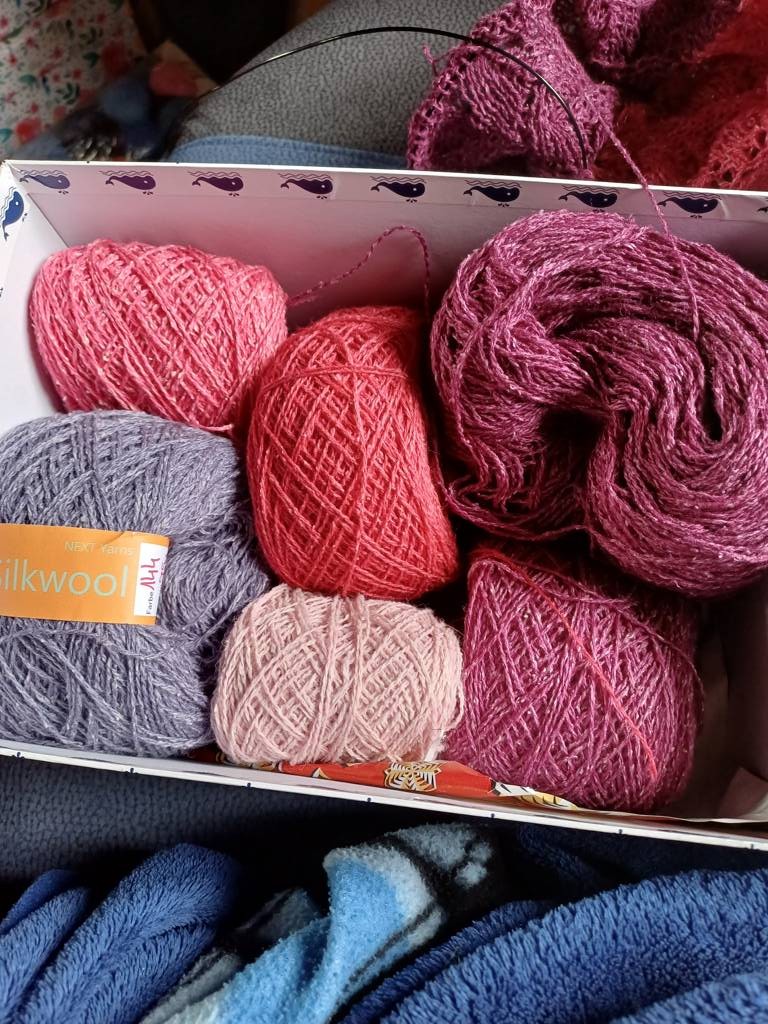 Irgendwann habe ich einmal günstig diese Wolle erstanden. 25 Prozent Seide, 75 Wolle. Nadelstärke 2,5.