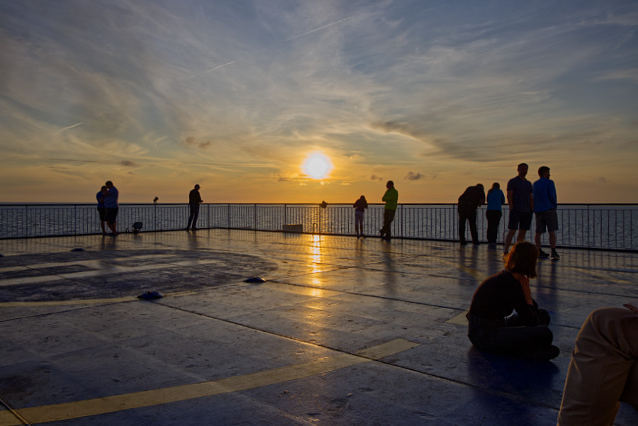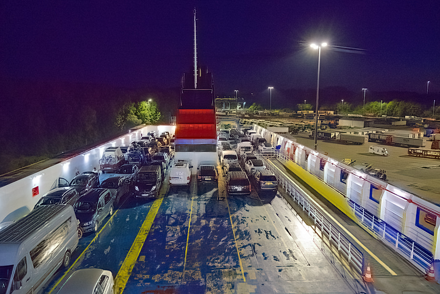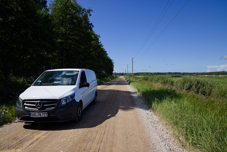 Am 29. Juli fuhren wir los. Da wir unsere zwei kleinen Motorräder auch mitnehmen wollten, packten wir sie in den Vito, zurrten sie fest und hatten nun noch genügend Platz für alles Mögliche. Das nutzen wir auch auch aus.Die Fähre von Travemünde nach Liepaja sollte erst um 23:30 ablegen, wunderbar, denn so konnten wir noch einen kleinen Abstecher bei meiner Schwester und Schwager machen, die in der Nähe von Lübekck wohnen.