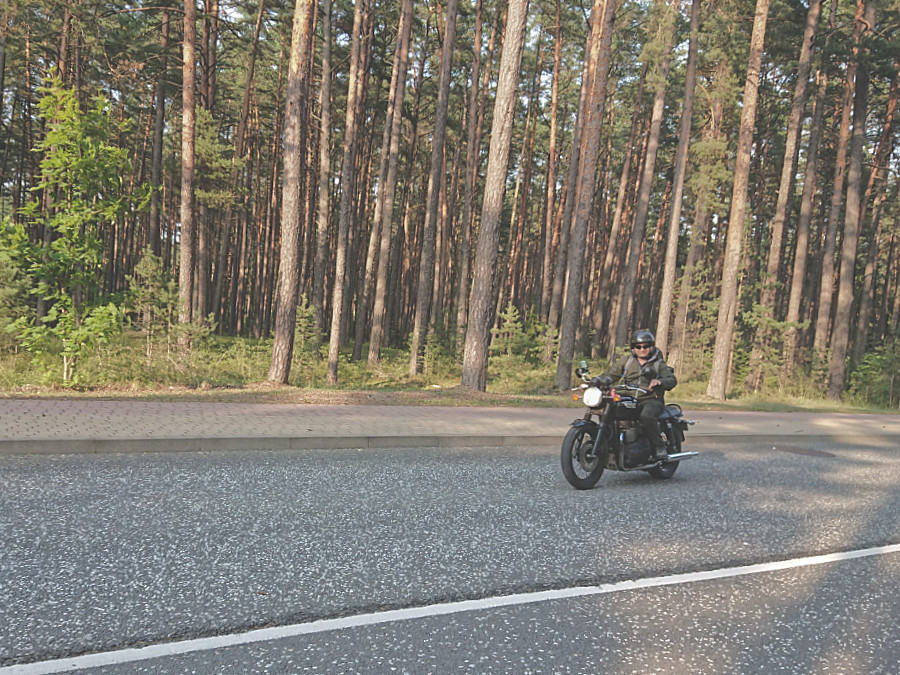 Da ich noch gerne bis nach Buļļuciems fahren wollte, der Ort liegt ganz am Ende dieser Halbinsel, stiegen wir wieder auf unsere Motorräder und brausten los. Ruckzuck haben wir eine Ausfahrt verpasst und fuhren über den Fluss Lielupe in Richtung Riga. Da wollten wir aber nicht hin und somit hielten wir an und ich wollte gerade auf meinem Garmin schauen, da hielt ein anderer Motorradfahrer an und sprach uns an.