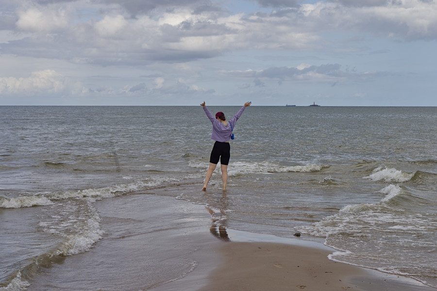 Den nächsten Stop machten wir dann in Engure. Wir spazierten am Hafen entlang, dort stehen kleine Campinghütten, beobachteten die Fischer, tranken einen Cappucino bei einer Bäckerei und liefen durch den schön angelegten Zušuciems-Park.
