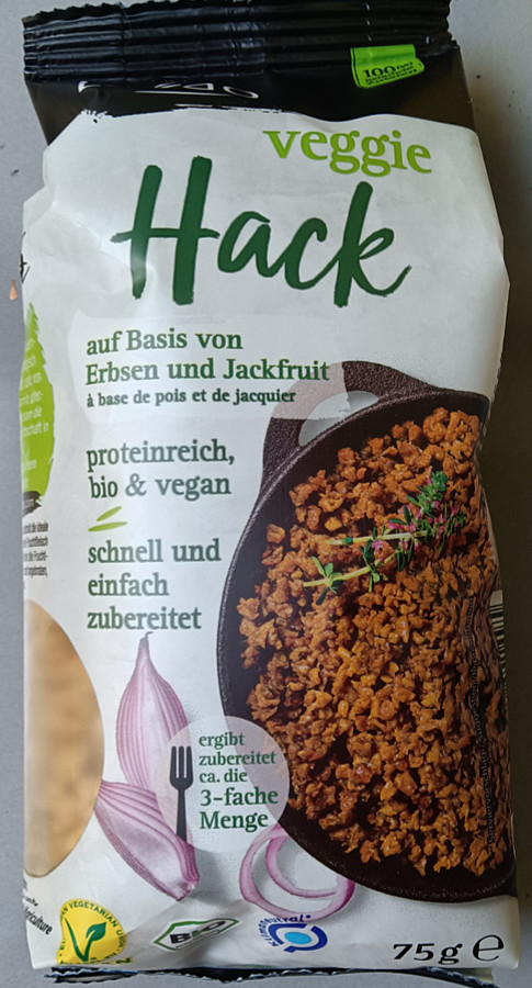 Ich habe gerade an anderer Stelle auch das Veggie-Hack, welches ich beim REWE gekauft habe vorgestellt: