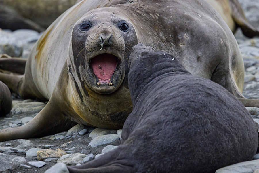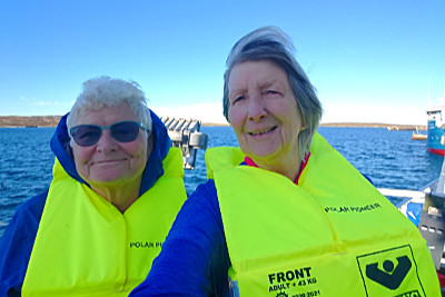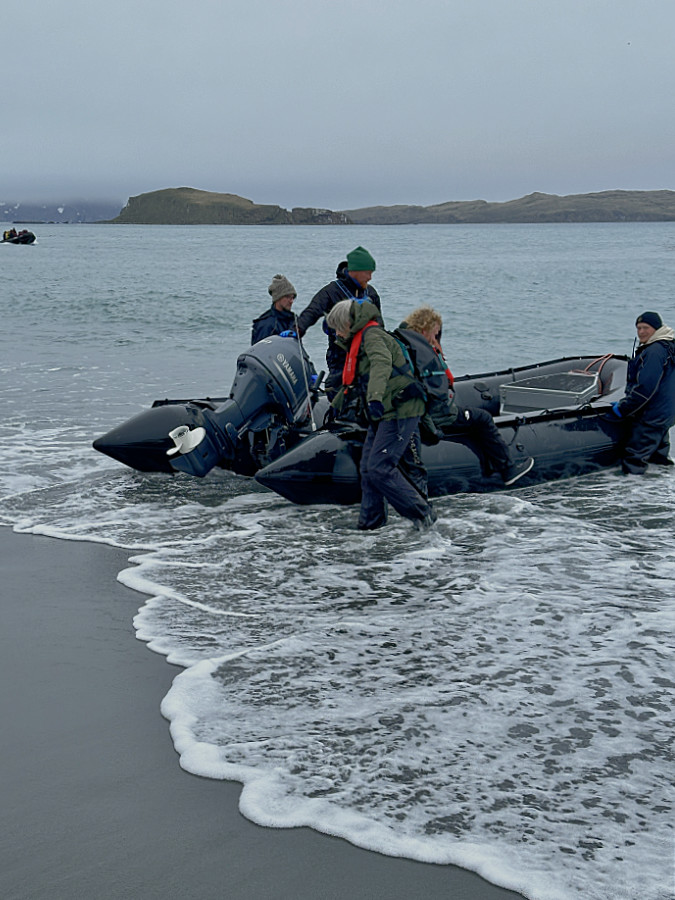 Dann kam die erlösende Nachricht, das Schiff wartet. Wunderbar, endlich ging es aufs Schiff. Die Seekrankheit hatten wir im Griff, dank kleiner Pflaster hinterm Ohr. Der Seegang war manchmal schon heftig. In Südgeorgien gab es Pinguine, Pelzrobben, Seelefanten, Albatrosse, Skuas, Schwertwale (Orcas), Eisberge und und und. Die Anlandungen mit dem Kodiak waren nicht immer einfach und die Pelzrobben fletschten schon manchmal die Zähne.