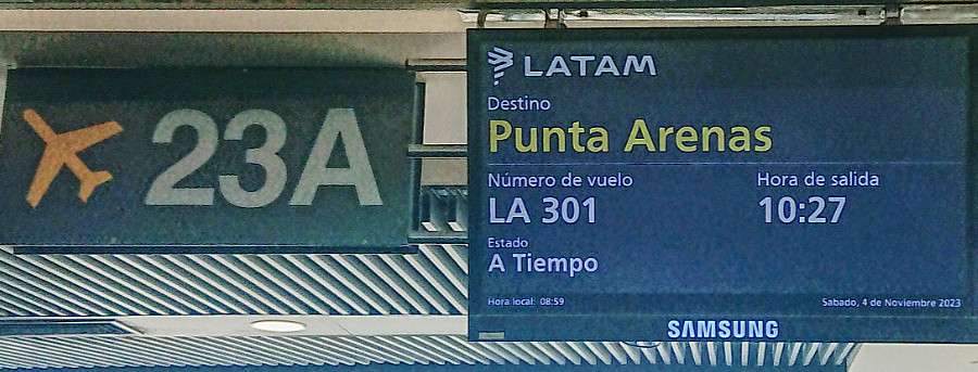 Unsere Rückreise dann erwies sich wieder als ein Abenteuer mit Überraschungen, die wir eigentlich nicht brauchten. Der Flug von den Falklandinseln verschob sich um fast 12 Stunden. Noch gab es Hoffnung, den Anschlussflug nach Europa zu bekommen, aber man hat uns einfach in Punta Arenas abgeladen und das mitten in der Nacht. Erst um 9 Uhr sollte es am nächsten Tag weitergehen. Die Crew braucht schließlich auch ihren Schlaf und wir wurden halt im kalten Flughafen alleine gelassen.