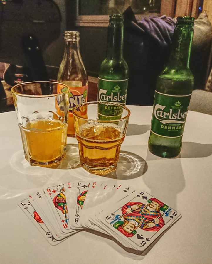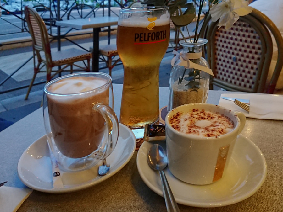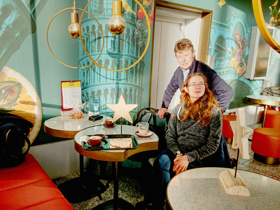 Ich hatte einen kostenlosen "Slot" für die Sicherheitskontrolle gebucht, damit wir nicht so lange warten mussten. Allerdings waren wir schon eine 3/4 Stunde früher am Flughafen. Während Friedrich noch einen Platz für das Auto im parkhaus suchte, buchte ich kurzerhand den Termin um. So konnten wir dann doch eine halbe Stunde früher schon einen Cappucino/Kakao trinken und noch eine schnelle Runde Skat spielen.