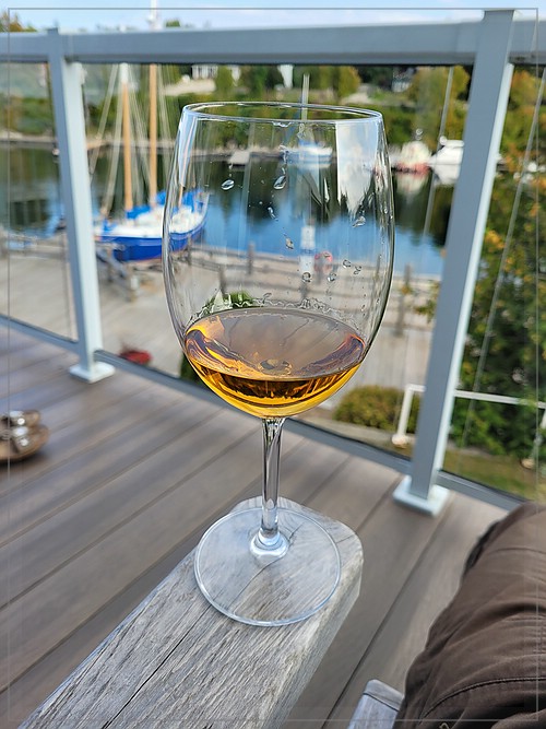 Der Gast, der das Zimmer neben der Rezeption bezogen hatte, stellte gerade Campingstühle neben sein Auto, weil er und seine Frau die Abendsonne bei einem Schluck Wein genießen wollten. Er sprach uns an und versuchte jemanden vom Hotel ans Telefon zu bekommen. Das war keinesfalls nötig, denn die nunmehr 15 Minuten konnten wir warten. Der freundliche Kanadier freute sich über die Unterhaltung und bot uns ein Glas Riesling an. Es wäre sehr unhöflich gewesen