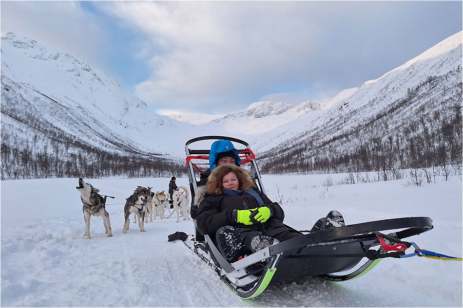 Auf diese Kurzreise waren wir im Vorfeld sehr gespannt, denn so weit oben im Norden (bei 69° nBr) waren wir noch nie, erst recht nicht im Winter und in Norwegen noch gar nicht - also alles sehr spannend für uns. Natürlich hatten wir auch die Hoffnung, vielleicht auch ein Polarlicht zu sehen, auf jeden Fall wollten wir aber mal mit einem Hundeschlitten fahren. Zwei entsprechende Touren haben wir im Voraus gebucht, der Rest war sozusagen offen.