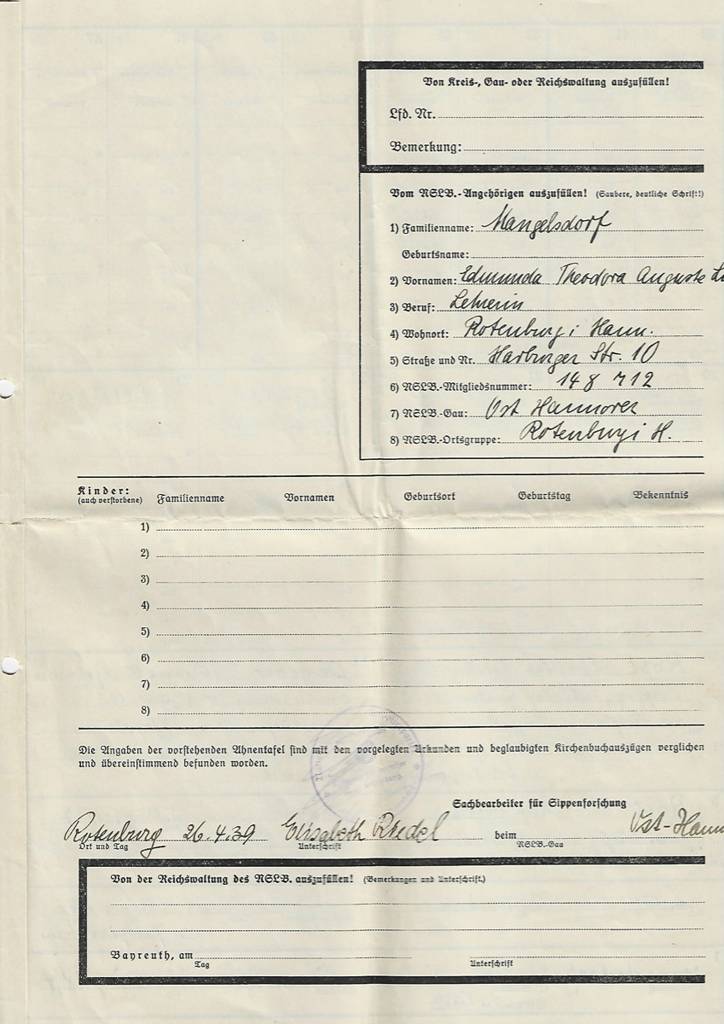 irgendwann beim Aufräumen fand ich mal eine Kiste mit alten Bildern, die noch immer in einer Ecke schlummerte. Diese sind von meiner Großtante Luise mütterlicherseits. Akribisch hat sie alles beschriftet und sogar eine Ahnentafel wurde 1936 angefertigt und mit alten begalubigten Kirchenbuchauszügen und Dokumenten belegt.