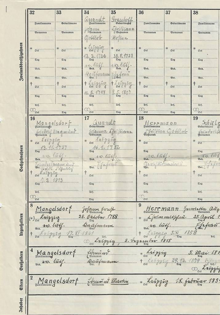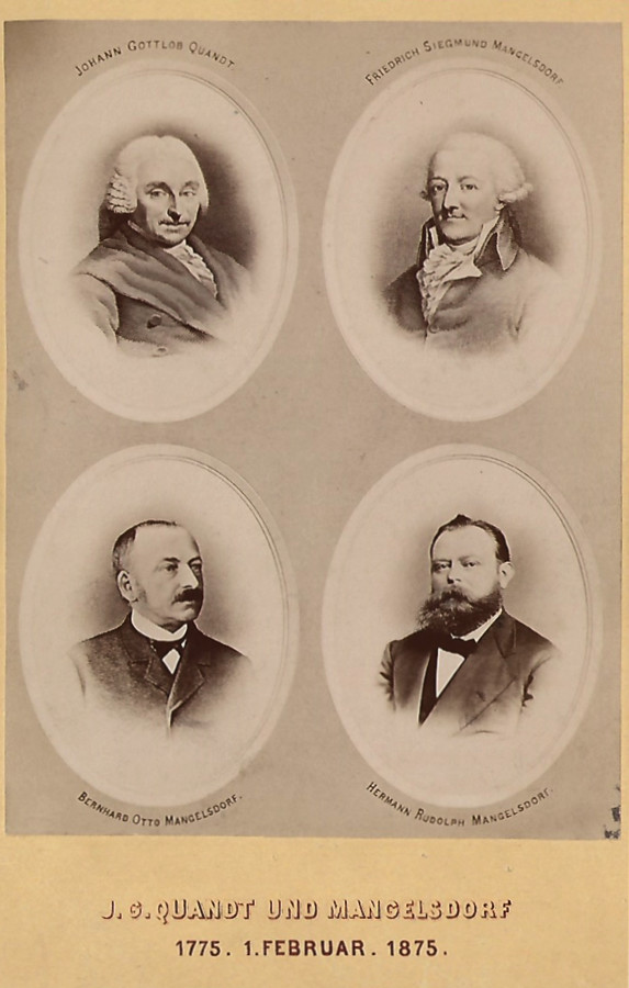 Ur-Ur-Ur-Ur-Ur-Großvater Johann Gottlob Quandt (*1726) und Ur-Ur-Ur-Ur-Großvater Friedrich Siegfried Mangelsdorf (* 1737) verheiratet mit Johanna Quand (*1752)