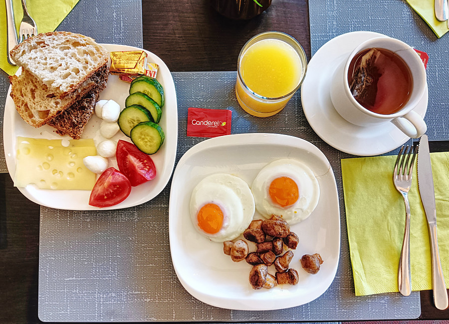 Wir laufen erst einmal zu Fuß und kaufen uns einen Kürtős kalács, dazu gibt es einen Cappucino. Das Wetter ist wieder sonnig.