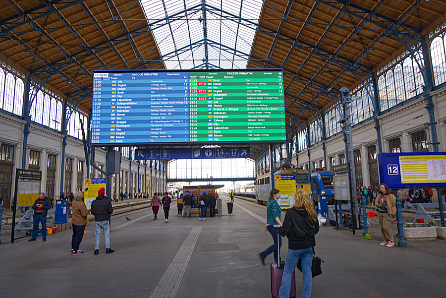 Wir nahmen die Bahn und stiegen an der Staatsoper aus. Es ist die größte Oper in ganz Ungarn (Neorenaissancebau von Miklós Ybl). Wir machten ein Bild und stiegen wieder ein und fuhren bis zum Oktogon tér, denn wir wollten einen Blick in den Westbahnhof (Nyugati pályaudvar) werfen. Er gilt als der zweitgrößte Bahnhof in Budapest. Weiter geht es mit der Tram in Richtung Mexico.