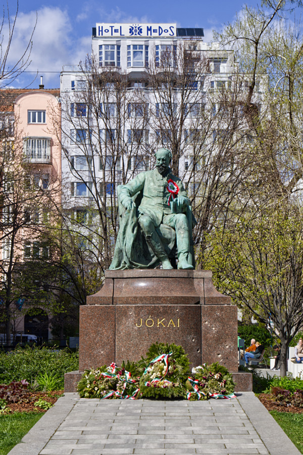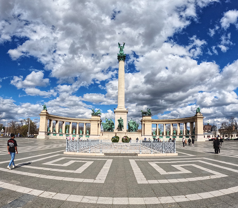 ZitatDas Parlament beschloss anlässlich der Tausendjahrfeier (magyarischen Landnahme von 896) ein Denkmal am Heldenplatz errichten zu lassen. Jedoch wurde das Monumentaldenkmal erst 1929 fertig. (gemeinsam geschaffen von dem Architekten Albert Schickedanz und dem Bildhauer György Zala) Auf der 36 m hohen Säule wacht der Erzengel Gabriel über die Reiterstatuen von Fürst Àrpád und sechs weiteren Stammesfürsten aus der Zeit der Landnahme. Zu Füßen der Säule befindet sich schlichter Steinquader mit der Aufschrift: Dem Gedenken der Helden, die ihr Leben der Freiheit unseres Volkes und der nationalen Unabhängigkeit geopfert haben.