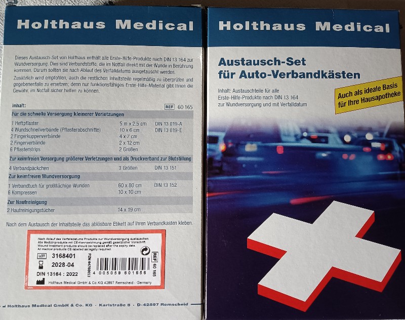 Daher habe ich gleich das Erste-Hilfe-Nachfüllset Holthaus DIN 13164:2022 Austauschset der Füllteile mit MHD, 29-teilig bestellt. (4,56 plus Porto)
