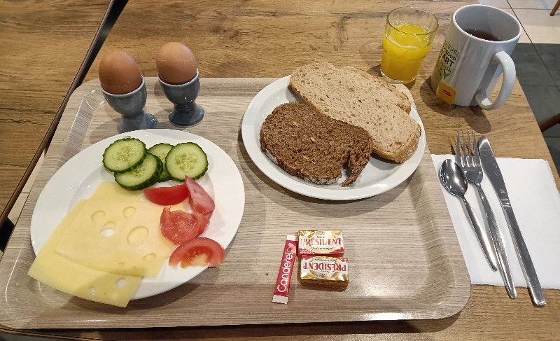 Nach 230 km habe ich endlich eine Raststätte gefunden. Bis Reims war es auf den Straßen Recht leer, aber regnerisch und diesig. Die Fahrt durch die Ardennen war schön.