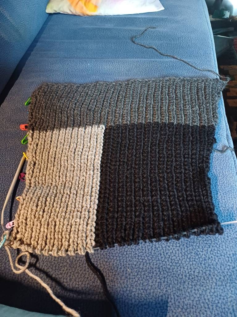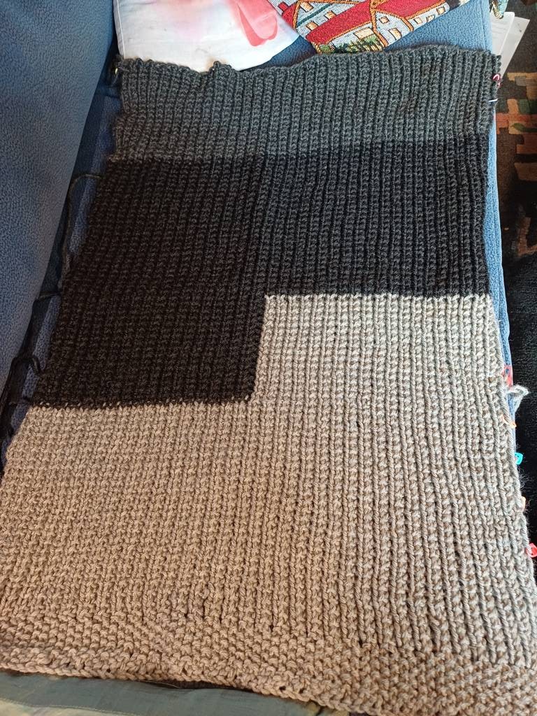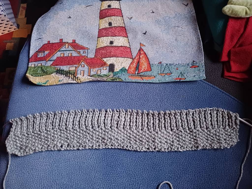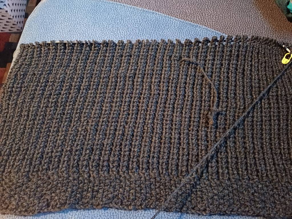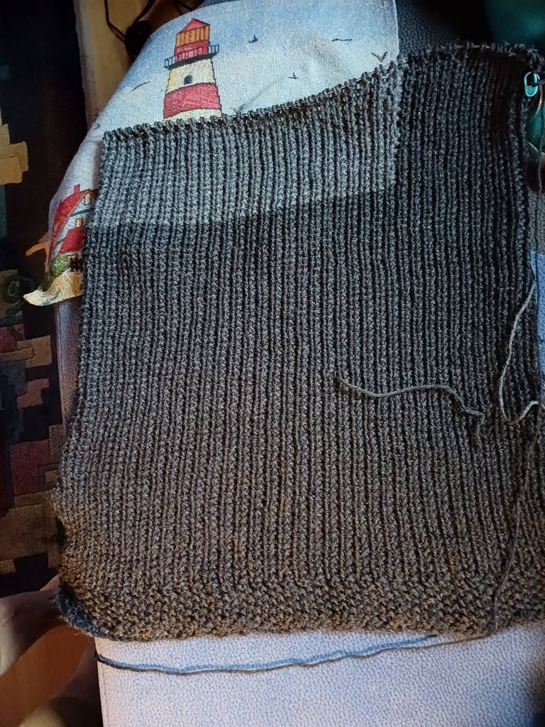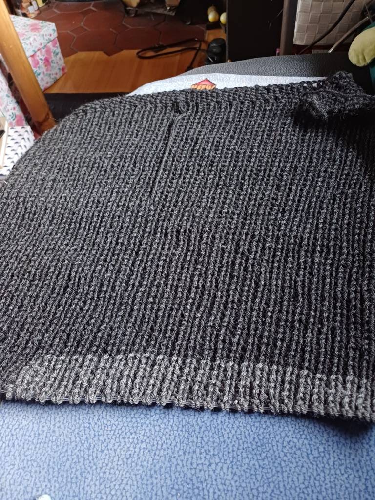 Durch das Patentmuster zieht er sich noch stark zusammen, aber ich denke er wird sich noch weiten und auch etwas länger werden.