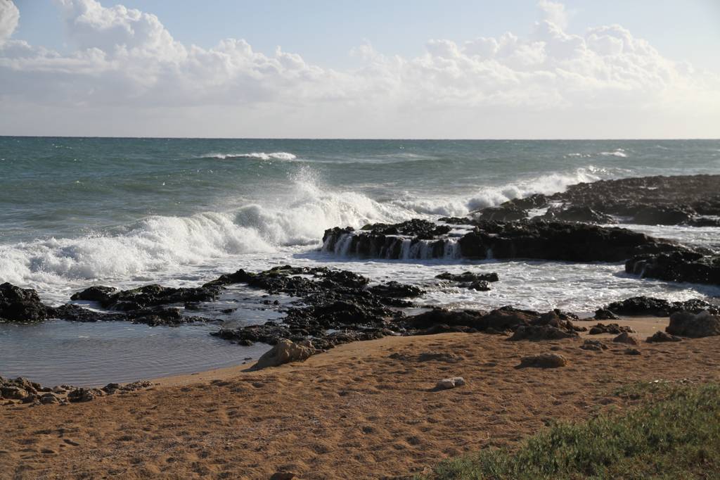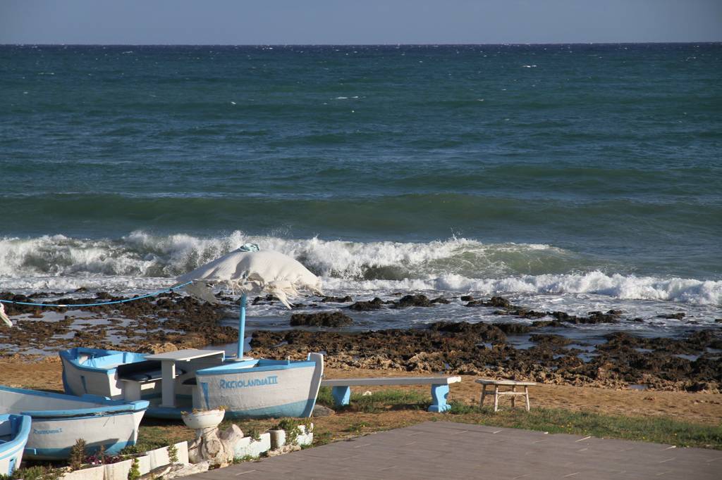 Morgens in Torrre Canne weht immer noch ein kräftiger Wind und es gibt richtig Wellen - an unserer direkten Einstiegstelle kommt man nicht mehr ins Meer