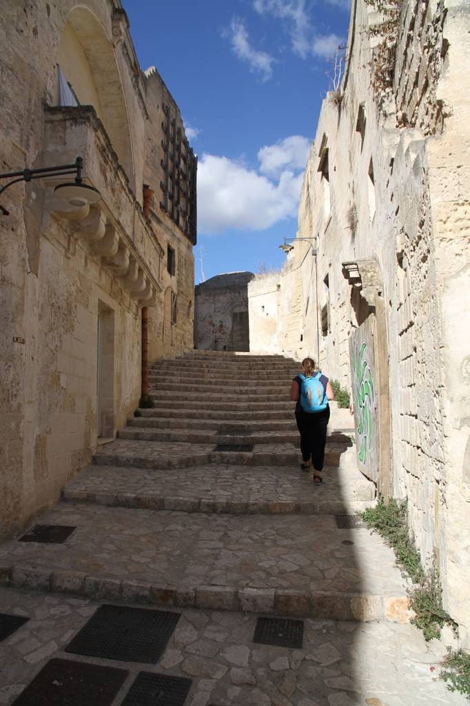 DIe eigentlichen Höhlenwohnungsbereich sind nicht so einfach zu erreichen. Überhaupt geht es in Matera reichlich treppauf und treppab. Jan hatte am Schluss massive gesundheitliche Probleme mitzukommen