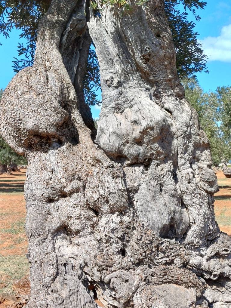 Je dichter wir nach Porto Cesario kommen, um so häufiger sehen wir leider Olivenhaine, die abgestorben sind. Man nennt es das "olive quick decline Syndrom" abgekürzt OQDS . Verantwortlich dafür ist ein Bakterium, was in deutsch "Feuerbakterium" heißt. Es führt zu einer Verstopfung der Poren der Pflanzgefäße, wodurch Wasser- und Nährstofftransport blockiert werden. Übertragen wird das Bakterium durch verschiedene Insekte, wie Zikaden. So richtig weiß man noch nicht, was man dagegen machen kann. Es wäre sehr schade, wenn diese alten Haine auch sterben würde. Denn danach sieht es so aus