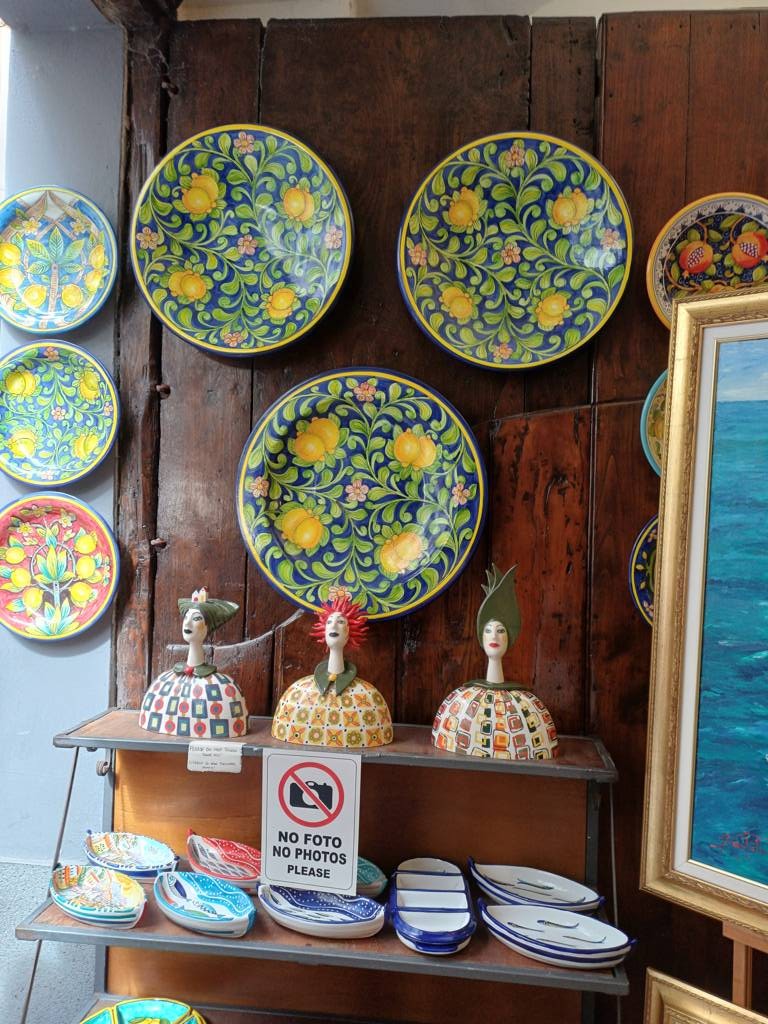 Hier in Amalfi scheint sich alles um Zitronen zu drehen - es ist unglaublich. Es gibt Zitronen in allen vorstellbaren Formen, in Natur, auf Keramik, flüssig als Likör, auf Stoffen etc.