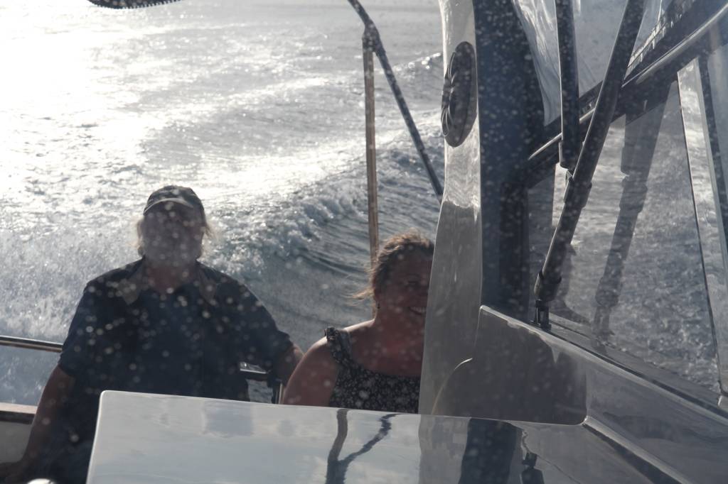 Okke, Nadine und ich sitzen auf einer Bank vor dem Fenster des Kapitäns, die anderen knien auf Matten vor uns. Das macht das Fotografieren manchmal etwas schwierig, weil sie im Weg sind