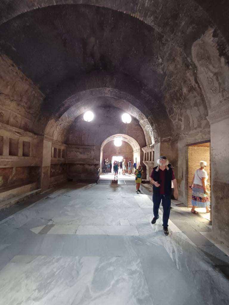 Gestern hatten wir noch kurz überlegt, ob wir heute mit einer Fähre noch einmal in eine der Orte fahren, uns dann aber dagegen entschieden. Auch gibt es in Salerno was anzuschauen, zB die Kathedrale. Aber wir wohnen noch ca 4-5 km vom Centrum entfernt und in Salerno gibt es Zonen, wo man als Tourist nicht einfahren darf. Der Bus wäre eine Alternative - aber wir entscheiden und hier zu bleiben. Jan hat etwas Gehprobleme. Unsere MItreisenden wollen den Strand mal aufsuchen, ich folge später, finde sie aber nicht wieder. Der Strand liegt ja unmittelbar vor uns, neben der Einfahrtsstraße - aber dort ist es echt nicht schön - dreckig.
