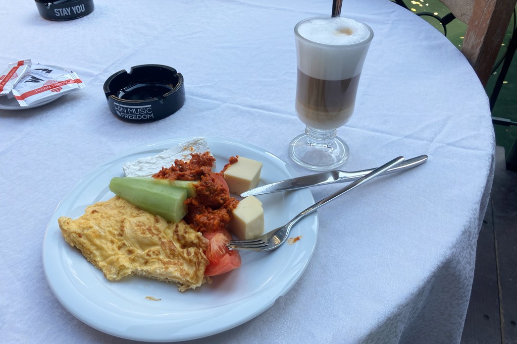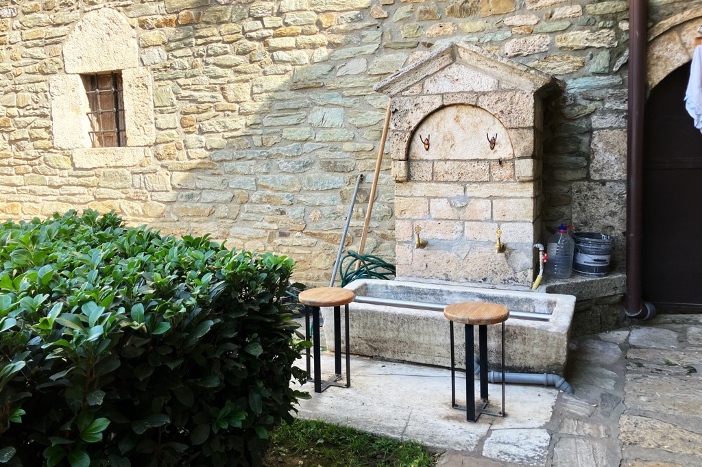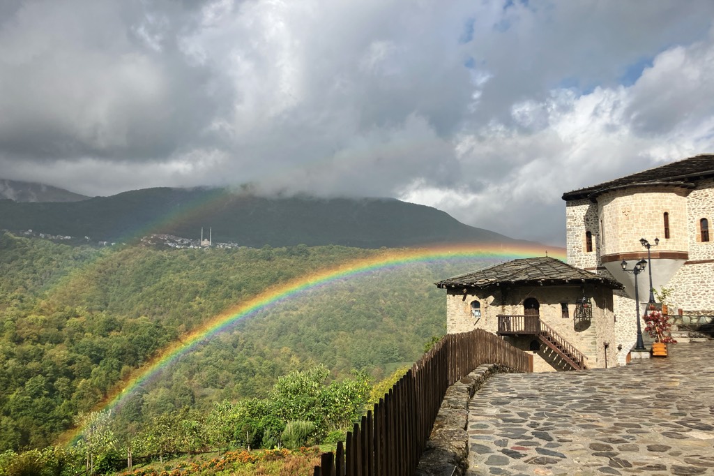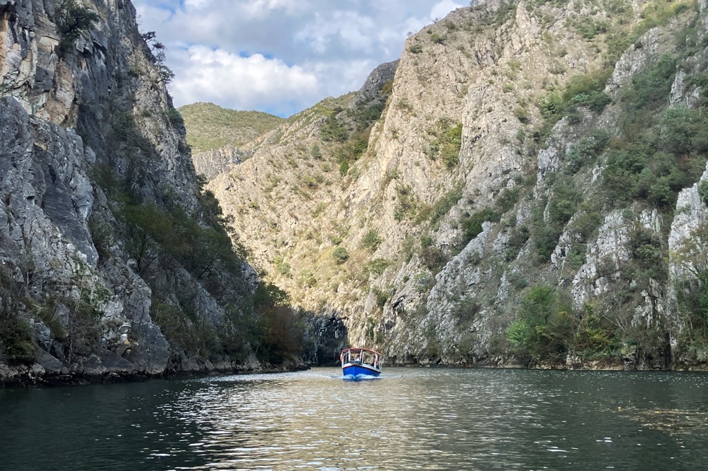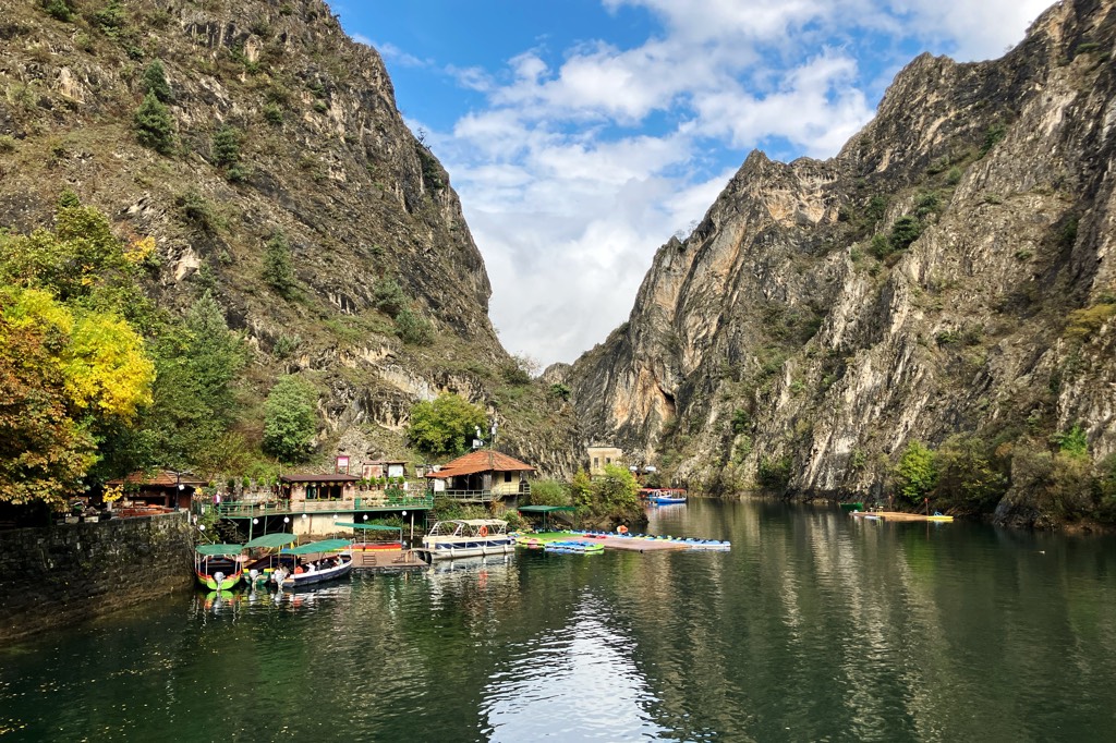 Unser erstes Ziel in Mazedonien ist der Matkacanyon. Als ich nach Zielen im Land guckte war die Gegend sofort gesetzt. Das Hotel ist ganz in Ordnung, es ist das einzige welches sich direkt im Canyon befindet und wenn die ganzen lãrmenden Tagesgäste endlich verschwunden sind, hat man auch abends seine Ruhe. Allerdings hat man auch keine andere Wahl als sich dort zu verpflegen. Zumindest bekommen Hotelgäste jeden Tag eine Flasche Wein umsonst zum Abendessen.